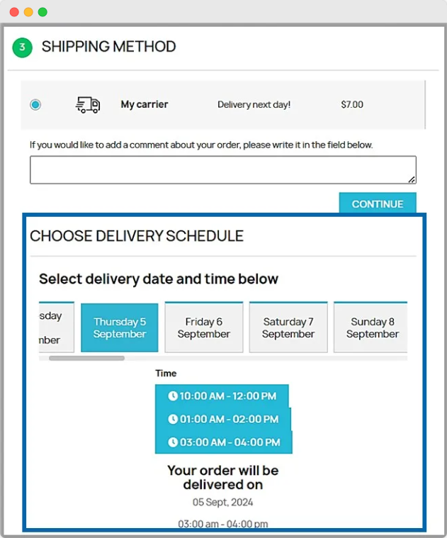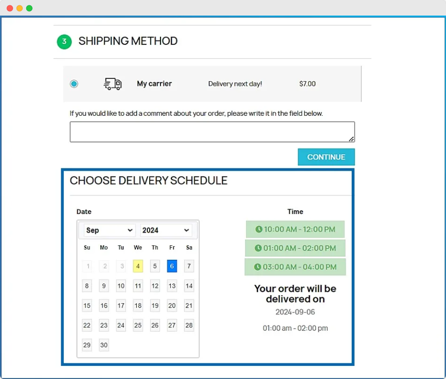 Display Delivery Date and Time on Checkout for Users to Select (Layout 1)