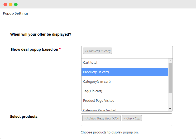 Based on the option you choose in step 5, you can customize the popups and the in-page deals through the settings below.