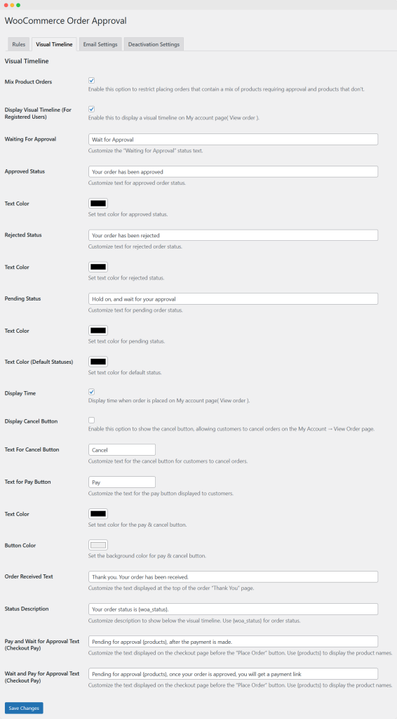WooCommerce Order Approval plugin empowers you to create a sophisticated order approval system for your online store. Choose to apply order approval rules to individual products or entire product categories, ensuring a tailored and efficient shopping experience for your customers. Enable the visual timeline feature on the My Account Page to provide transparency and real-time order tracking for registered users.