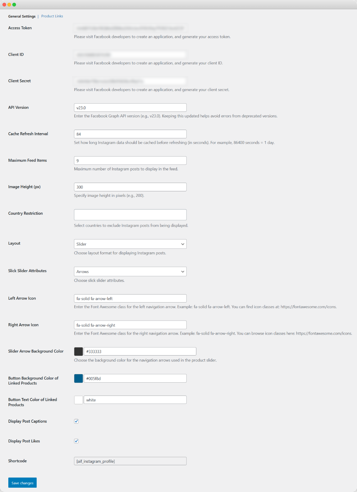 Once the plugin is activated Go to WooCommerce > Settings and click on Insta Feed. Here you can fill in the following details: