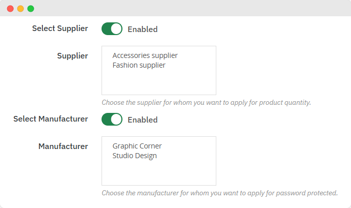 - Choose to set quantity rules for desired categories, suppliers, and manufacturersÂ
