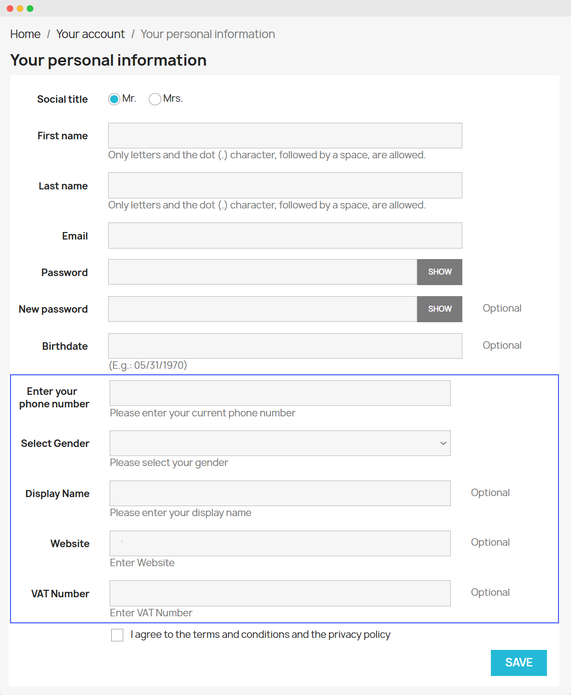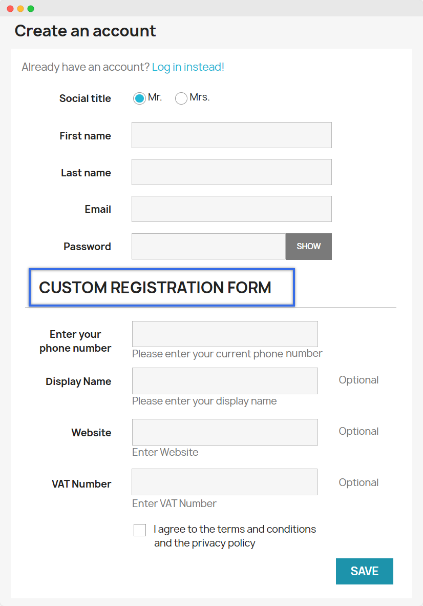 Enhance your customer signup experience with the PrestaShop Custom Registration Fields Module. This powerful module allows you to add an unlimited number of custom fields to collect the information your business needs. The information can range from customer preferences to business info or custom data, helping you get to know your customers better from the outset. This is also an ideal way to do personalized marketing and strengthen customer relationships.