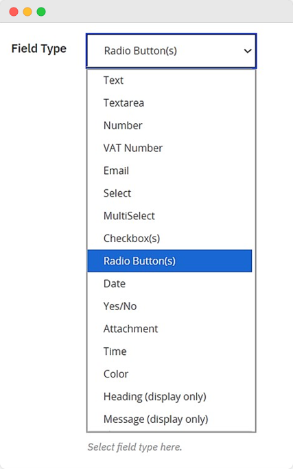 Multiselect | Checkbox(s) | Radio Button (s) |