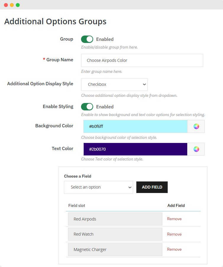 By using PrestaShop Advanced Product Options manager, you can create different types of combos/groups for individual items, such as pairing up a shirt with belt, pants, watch, and shoes. Choose to display additional groups in three different styles and add unlimited fields for the parent product. This will help you create attractive product combinations and improve cross-selling opportunities.