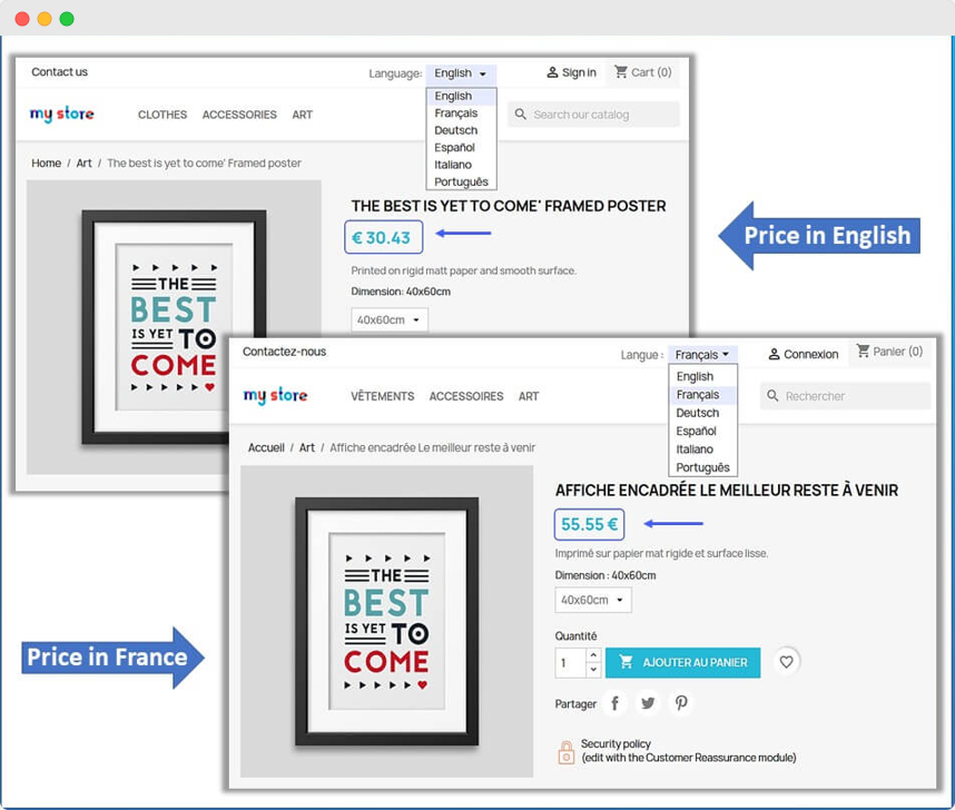 Moreover, the module lets you adjust prices according to the latest exchange rates, currencies, and languages, giving you the option to customize prices for users across different regions.