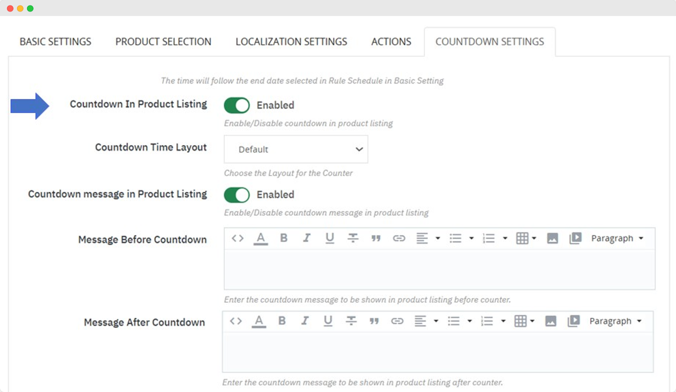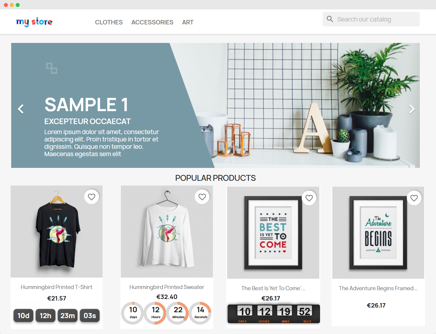 The Module allows you to display a countdown clock on listing pages of your store. Simply enter start & end dates for special price offers and enable the countdown to grab customer attention. Moreover, you can style the time using three different layouts and customize the countdown message to induce FOMO or create urgency among your customers.