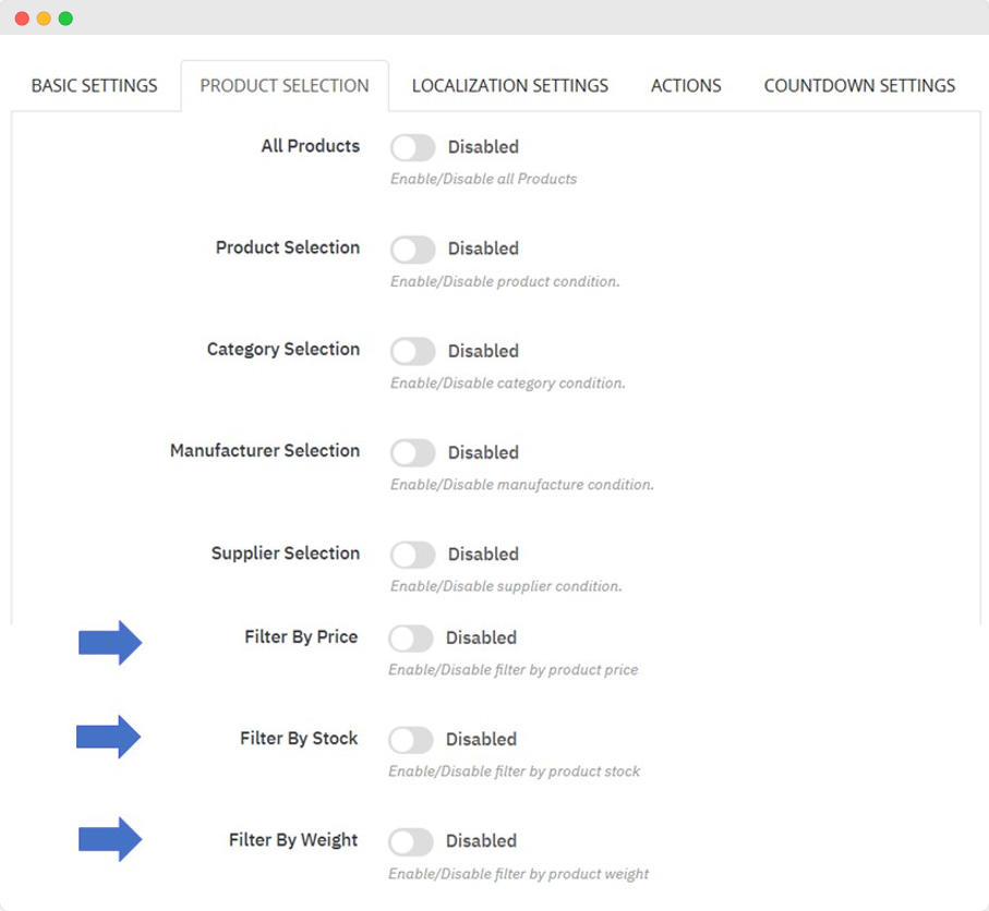 By using the module, you can define a specific price range for a product’s weight, stock, quantity, and cost. With just one quick setting, you can apply discounts on best-seller products, clear overstocked items, and offer bulk purchase deals for particular customer groups. Moreover, for each aspect, merchants can define minimum & maximum price, quantity, and weight to apply discounts accordingly. This will optimize the overall pricing strategy and attract more buyers to your store.