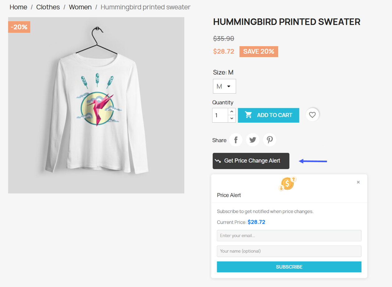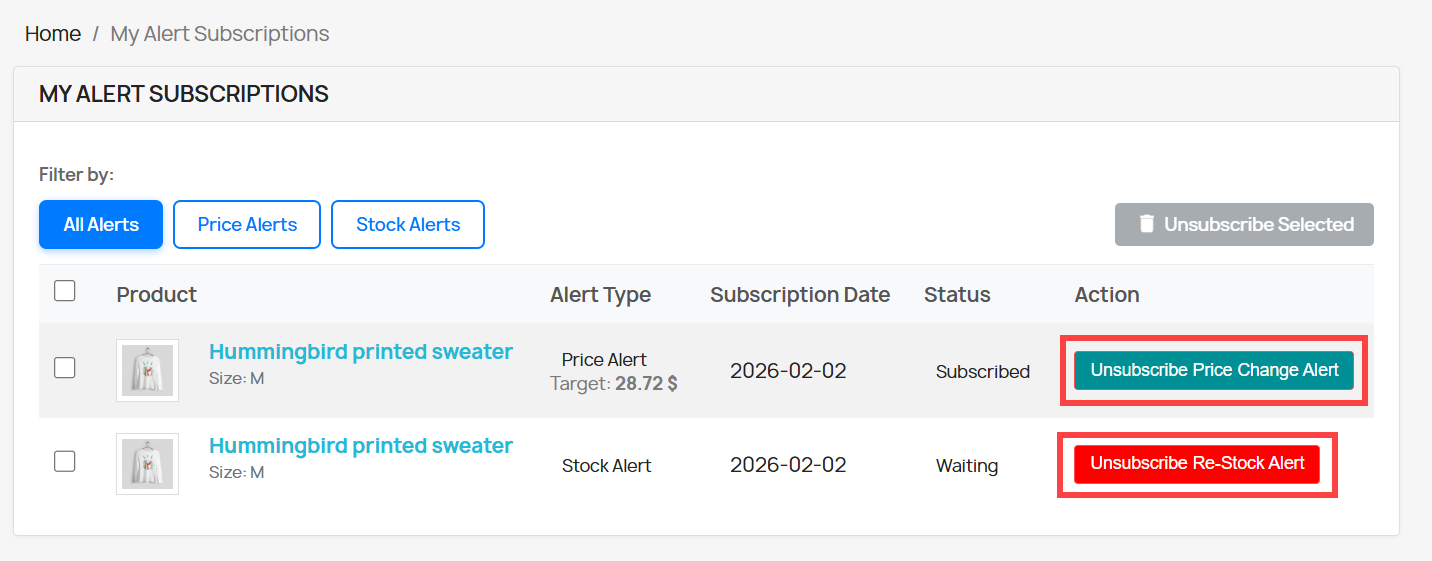 - Enable Price Alerts to notify customers of product price changes