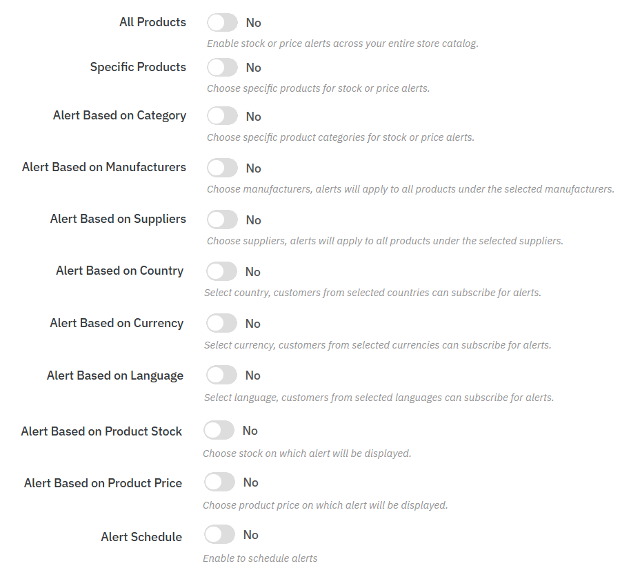 - Activate alerts for the entire store catalog