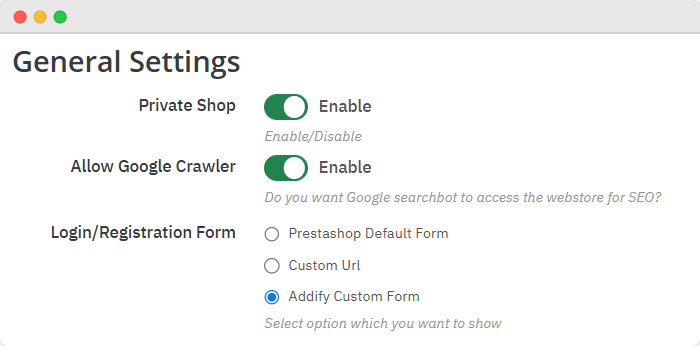 Make your store private to protect your products from copyright infringement and reduce unwanted traffic. With the PrestaShop Private Store module, allow access only to your preferred audience by making the entire store or specific sections private. You can set up password protection or display a custom form to manually or automatically approve new registrations. Gain control over who can access your store, allowing only select customers to pass through, creating a better user experience with improved conversions.