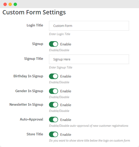 To allow only desired customers to access your private store, you can display either the Default Prestashop Signup Form or add a Custom Form with fields of your choice. Once a customer comes to a private section, they will have to fill out the form and then be allowed to access.