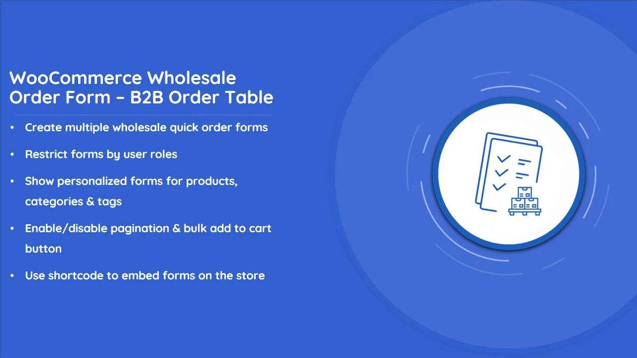 The WooCommerce Wholesale Order Form Plugin generates shortcode for each order form simplifies the process of embedding these forms onto various pages of the website. This enables businesses to strategically position quick order forms in high-traffic areas.