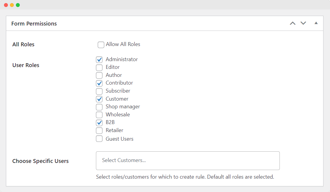 Beyond the standard functionality of restricting forms to all user roles, the plugin extends its capabilities to facilitate targeted interactions with specific customers and user roles.