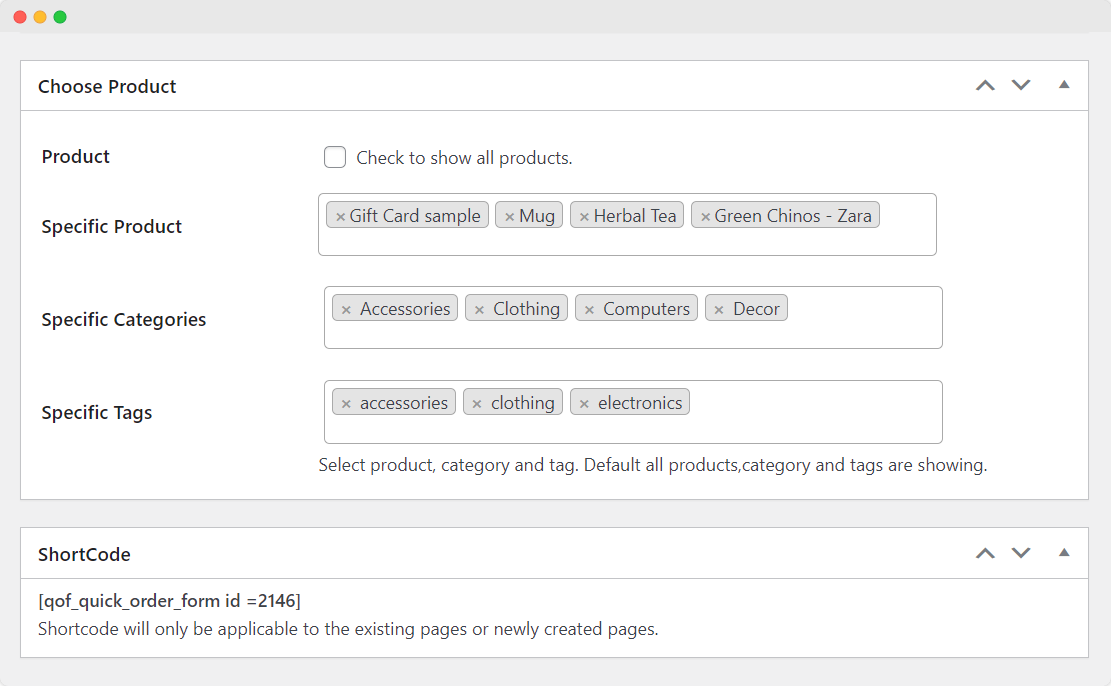 Using the plugin, choose to restrict quick order forms based on all or selected products. Define which products, categories, or tags are accessible within each quick order form to further add a layer of precision to the product presentation strategy.