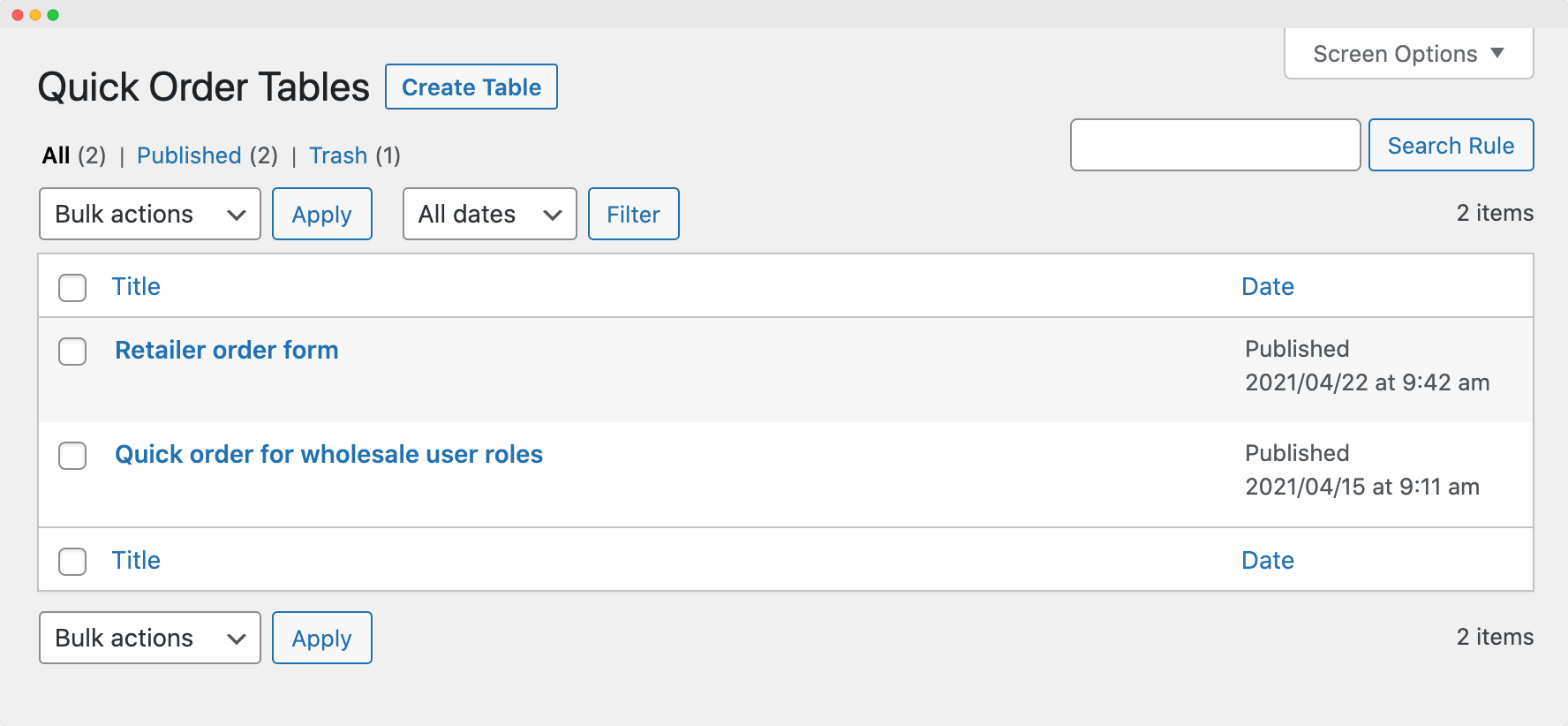 With WooCommerce Quick Order Table Plugin, you can create multiple order tables and display them on specific pages using the short codes. Through the implementation of shortcodes, admins can strategically display these tables on designated pages. For example, you can create different order tables for wholesaler and retailer user roles.