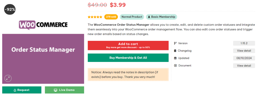 As in WooCommerce, you have a list of eight order statuses by default, which usually do not cover each aspect. By using this plugin, you can easily create a custom order status and assign it to all or specific products/categories. Moreover, you can import/export order statuses in bulk using a CSV file. You can also add a custom icon instead of a custom status and allow users to cancel orders at a specific stage.